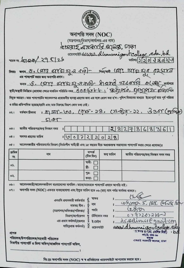 Notice Title : বিভাগীয় অনাপত্তিপত্র (NOC) প্রদান প্রসঙ্গে General