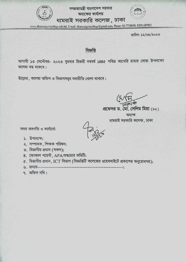 Notice Title : কলেজ বন্ধের বিজ্ঞপ্তি