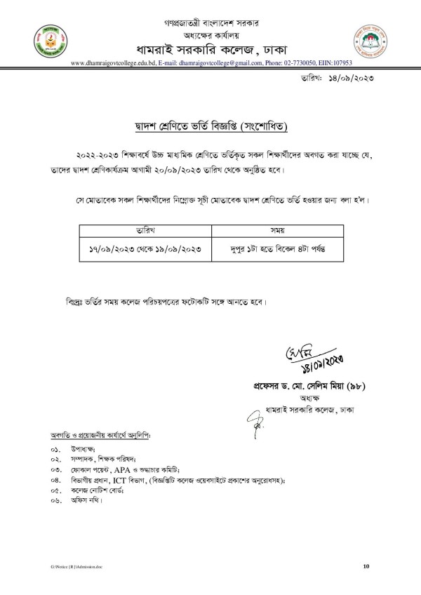 Notice Title : ভর্তি বিজ্ঞপ্তি
