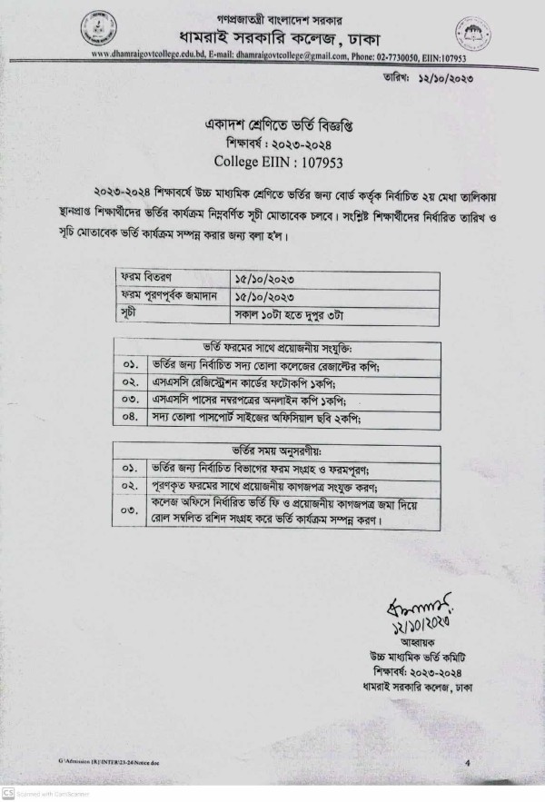 Notice Title : একাদশ শ্রেণিতে ভর্তি বিজ্ঞপ্তি (২য় মেধা তালিকার শিক্ষার্থী)