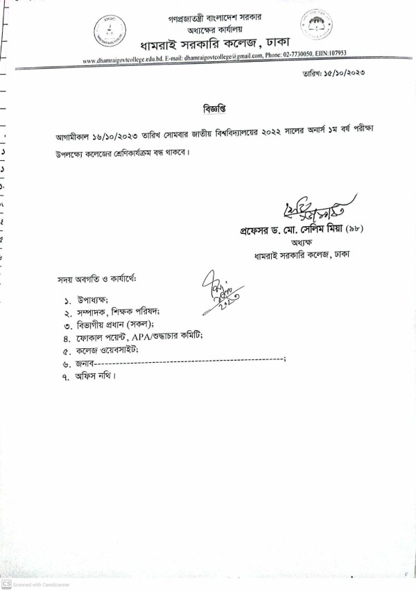 Notice Title : শ্রেনিকার্যক্রম বন্ধের বিজ্ঞপ্তি