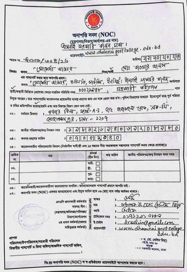 Notice Title : বিভাগীয় অনাপত্তিপত্র (এনওসি) প্রদান