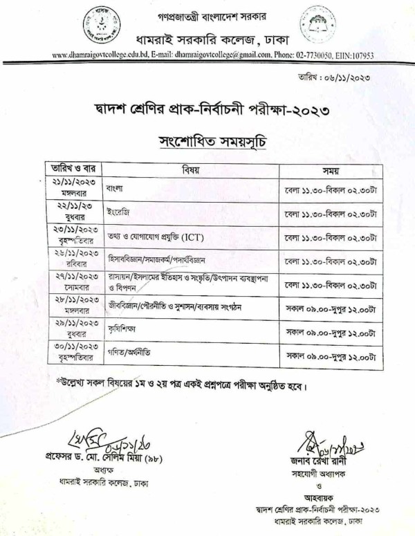 Notice Title : দ্বাদশ শ্রেণির প্রাক-নির্বাচনী পরীক্ষা-২০২৩ এর সংশোধিত সময়সূচি
