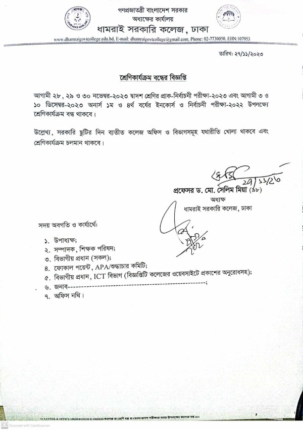 Notice Title : শ্রেণিকার্যক্রম বন্ধের বিজ্ঞপ্তি