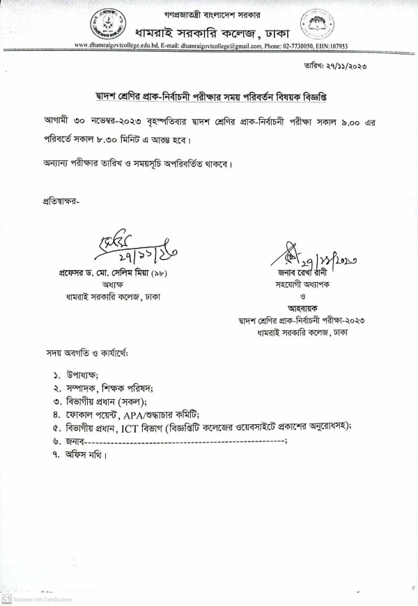 Notice Title : দ্বাদশ শ্রেণির প্রাক-নির্বাচনী পরীক্ষার সময় পরিবর্তন বিষয়ক বিজ্ঞপ্তি