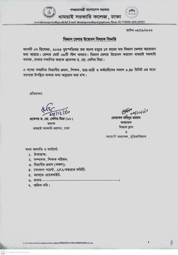 Notice Title : বিজ্ঞান মেলার উদ্বোধন বিষয়ক বিজ্ঞপ্তি