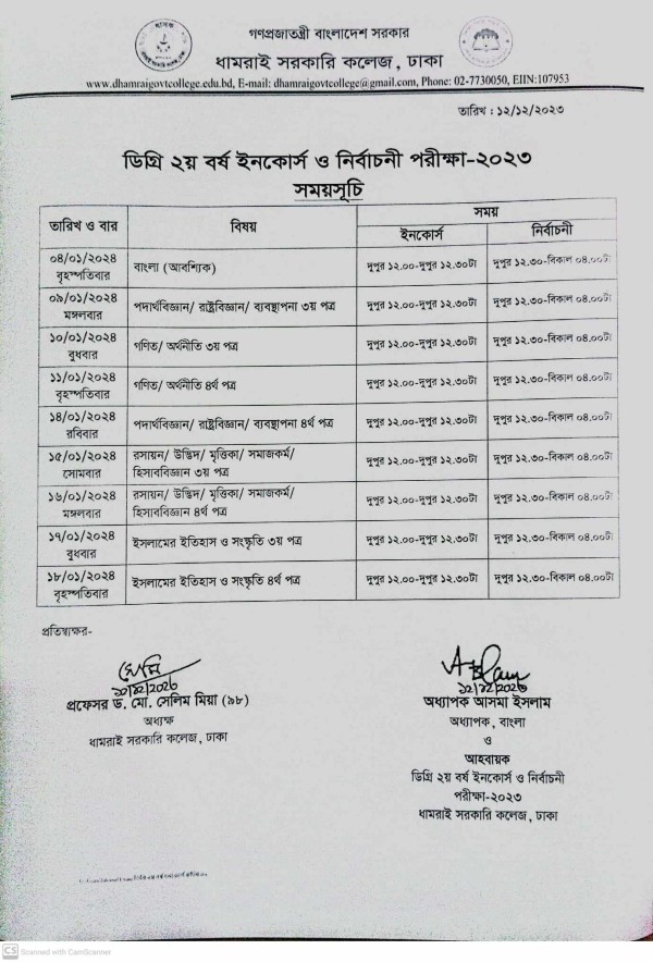 Notice Title : ডিগ্রি ২য় বর্ষ ইনকোর্স ও নির্বাচনী পরীক্ষা ২০২৩ এর সময়সূচি