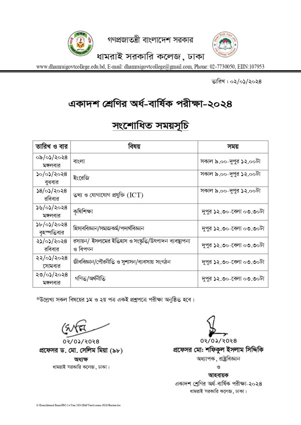 Notice Title : একাদশ শ্রেণির অর্ধ-বার্ষিক পরীক্ষা-২০২৪ এর সংশোধিত সময়সূচি