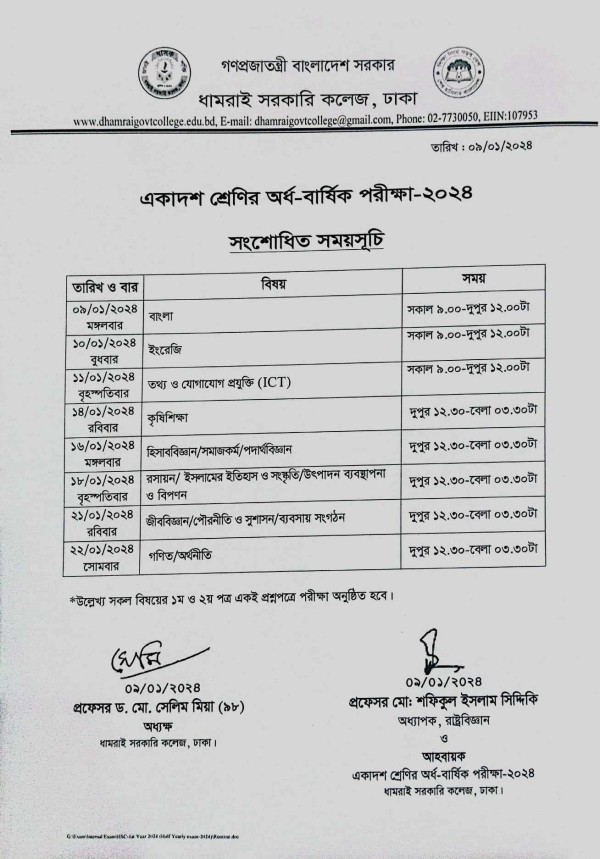 Notice Title : একাদশ শ্রেণির অর্ধ-বার্ষিক পরীক্ষা-২০২৪ এর সংশোধিত সময়সূচি