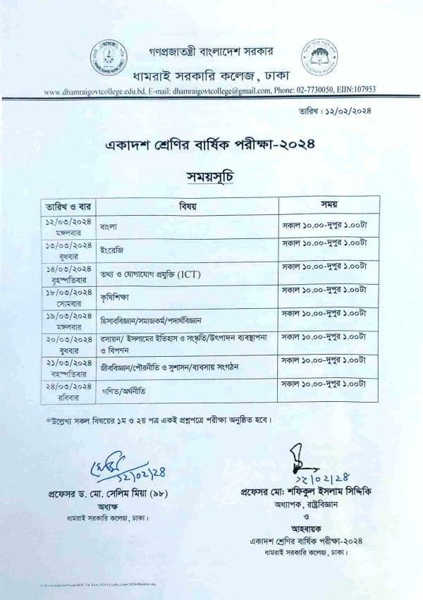 Notice Title : একাদশ শ্রেণির বার্ষিক পরীক্ষা-২০২৪ এর সময়সূচি