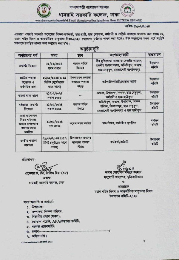 Notice Title : মহান শহিদ দিবস ও আন্তর্জাতিক মাতৃভাষা দিবস-২০২৪ বিষয়ক বিজ্ঞপ্তি