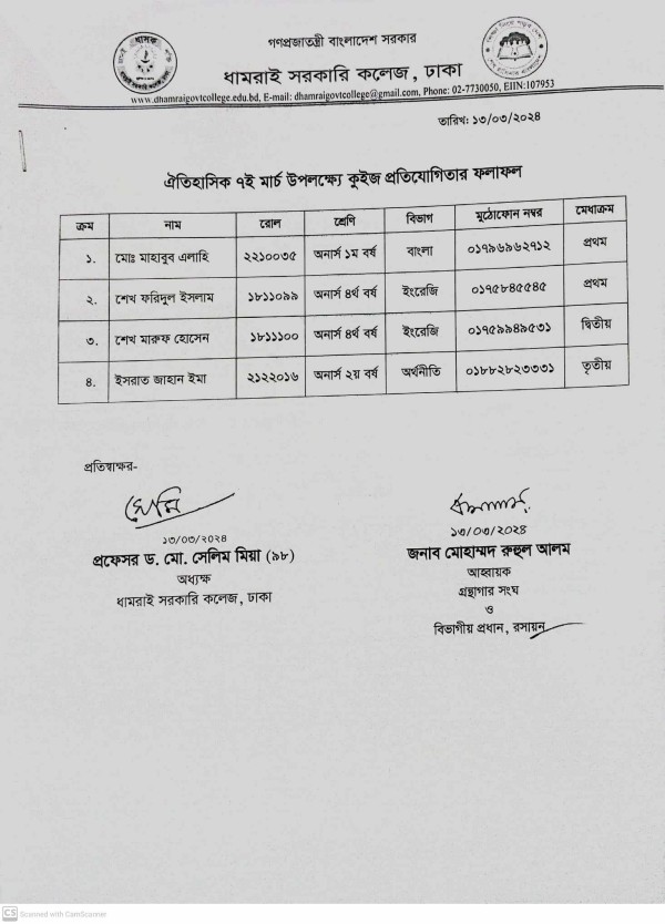 Notice Title : ঐতিহাসিক ৭ই মার্চ দিবস ২০২৪ উপলক্ষ্যে কুইজ প্রতিযোগিতার ফলাফল