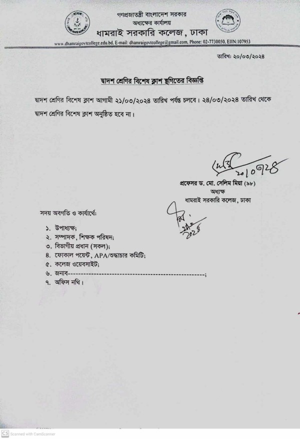 Notice Title : দ্বাদশ শ্রেণির বিশেষ ক্লাশ স্থগিতের বিজ্ঞপ্তি
