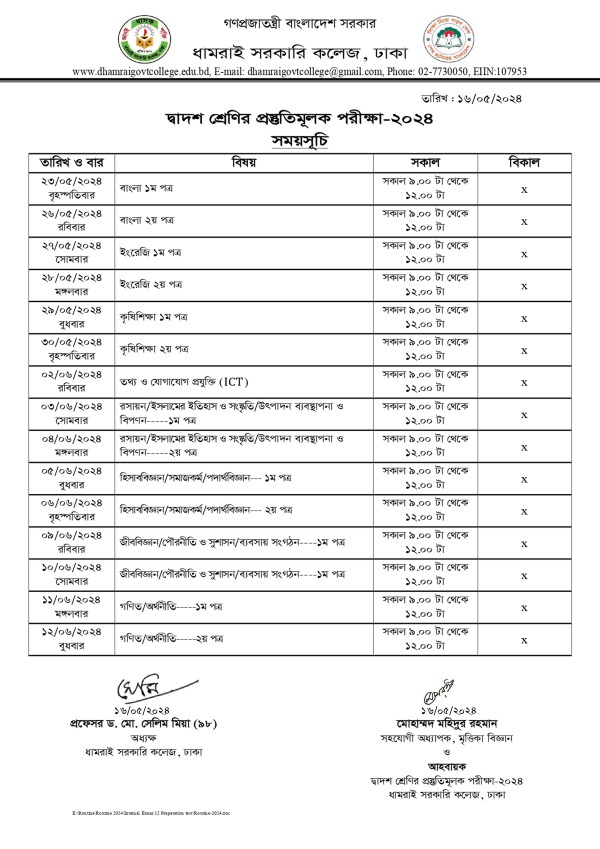Notice Title : দ্বাদশ শ্রেণির প্রস্তুতিমূলক পরীক্ষা - ২০২৪ এর সময়সূচি