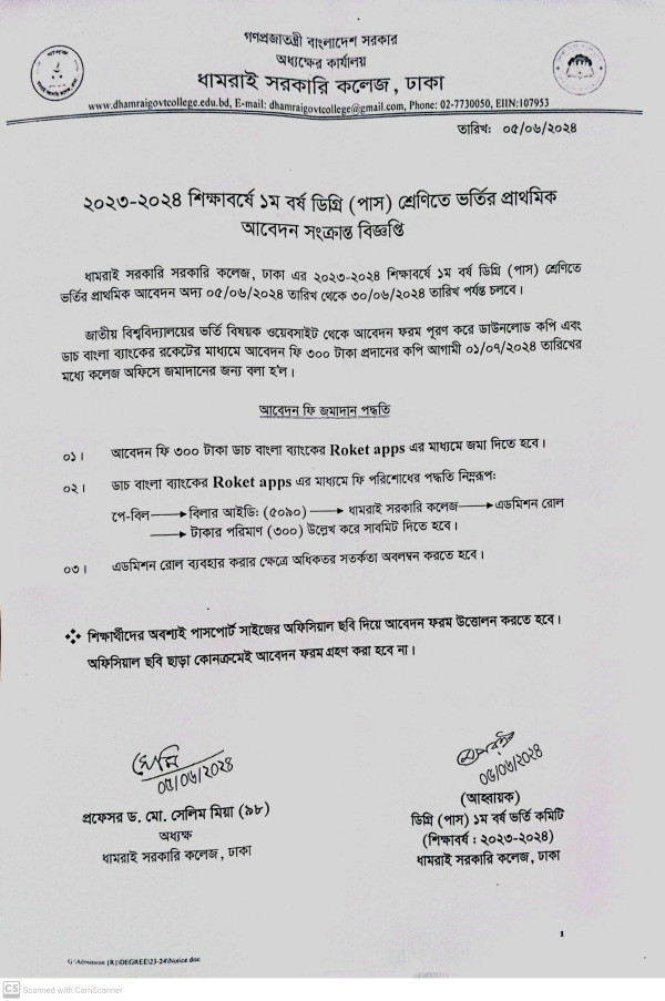 Notice Title : ডিগ্রি ১ম বর্ষ (শিক্ষাবর্ষ: ২০২৩-২০২৪) ভর্তি বিজ্ঞপ্তি