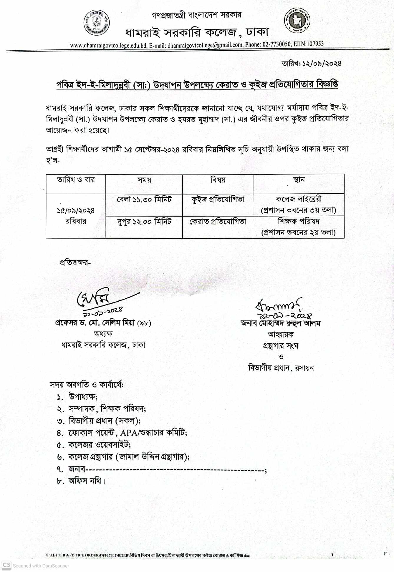Notice Title : পবিত্র ইদ-ই-মিলাদুন্নবী (সা.) উদযাপন উপলক্ষ্যে কেরাত ও কুইজ প্রতিযোগিতা বিষয়ক বিজ্ঞপ্তি