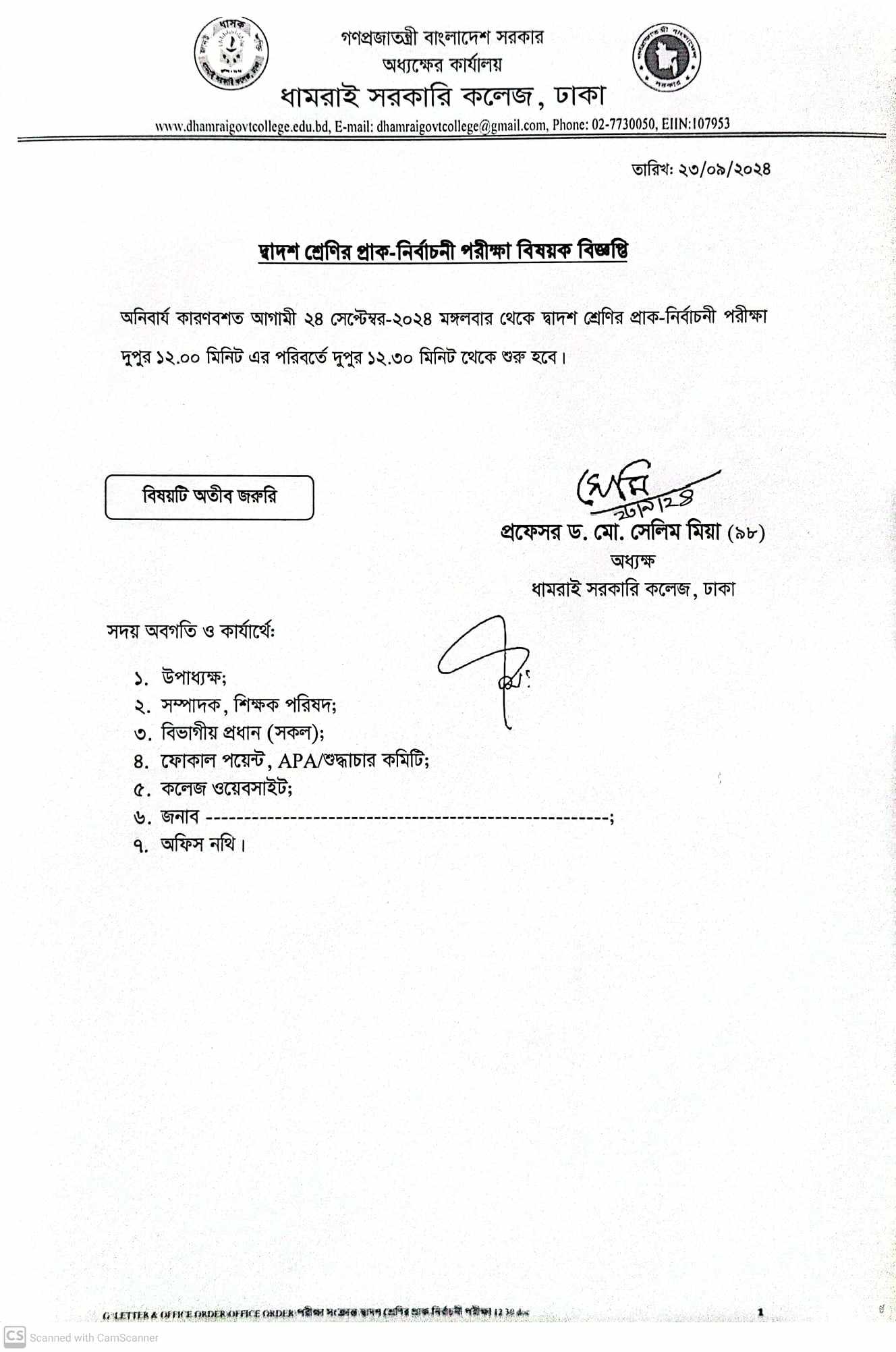 Notice Title : দ্বাদশ শ্রেণির প্রাক-নির্বাচনী পরীক্ষা আরম্ভ বিষয়ক বিজ্ঞপ্তি