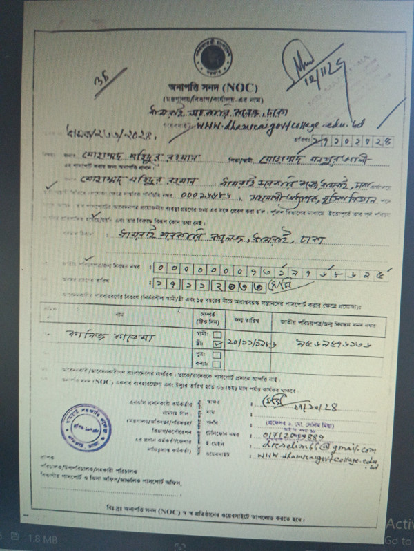 Notice Title : এনওসি (জনাব মোহাম্মদ মহিদুর রহমান, সহযোগী অধ্যাপক, মৃত্তিকাবিজ্ঞান)