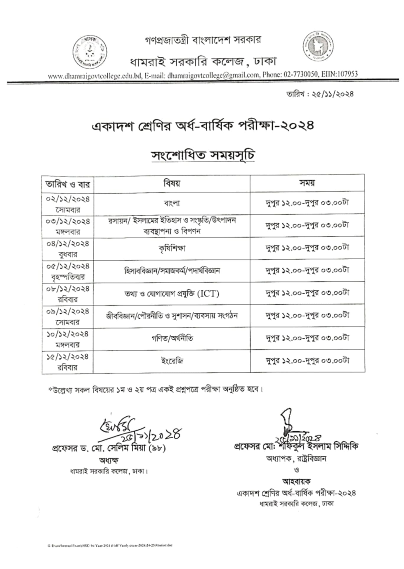Notice Title : একাদশ শ্রেণির অর্ধ-বার্ষিক পরীক্ষার সংশোধিত বিজ্ঞপ্তি
