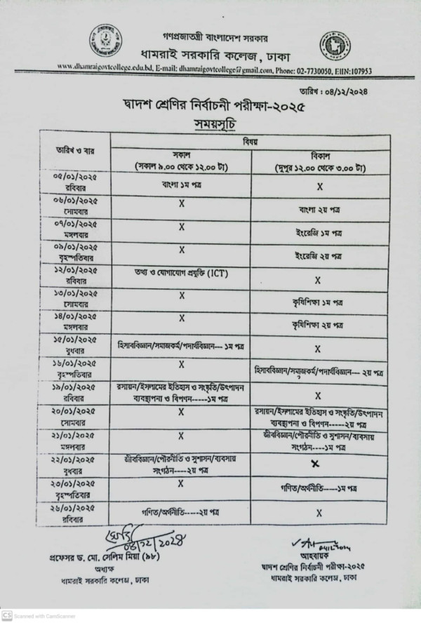 Notice Title : দ্বাদশ শ্রেণির নির্বাচনী পরীক্ষা-২০২৫