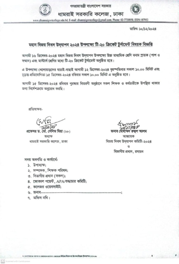 Notice Title : বিজয় দিবস টি-২০ ক্রিকেট টুর্নামেন্ট এর বিজ্ঞপ্তি