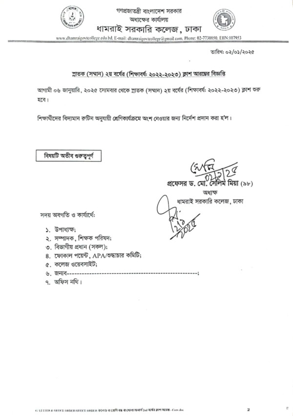 Notice Title : স্নাতক (সম্মান) ২য় বর্ষের (সেশন: ২০২২-২০২৩) ক্লাশ শুরু বিষয়ক বিজ্ঞপ্তি