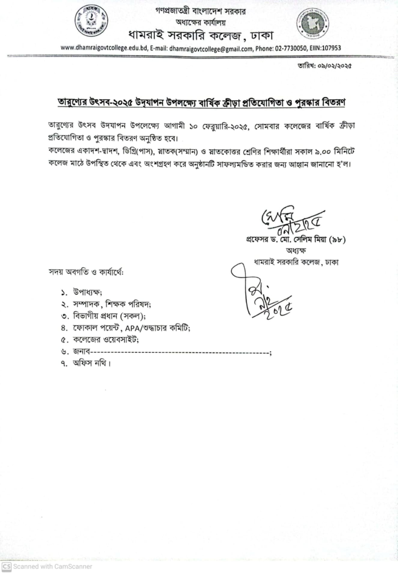 Notice Title : বার্ষিক ক্রীড়া প্রতিযোগিতা ও পুরস্কার বিতরণ অনুষ্ঠানের বিজ্ঞপ্তি