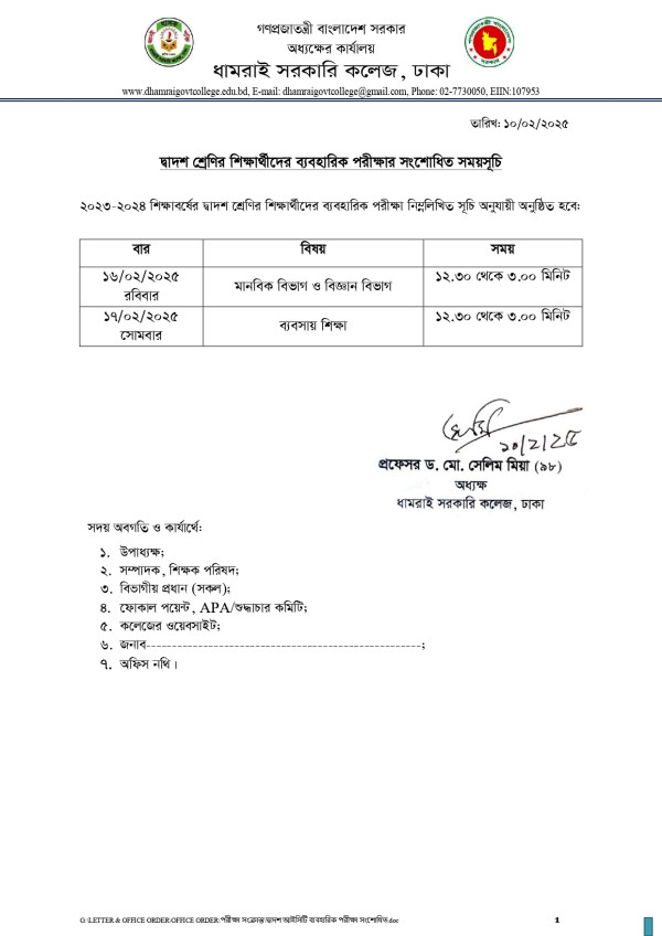 Notice Title : দ্বাদশ শ্রেণির নির্বাচনী (আইসিটি) ব্যবহারিক পরীক্ষার সংশোধিত সময়সূচি