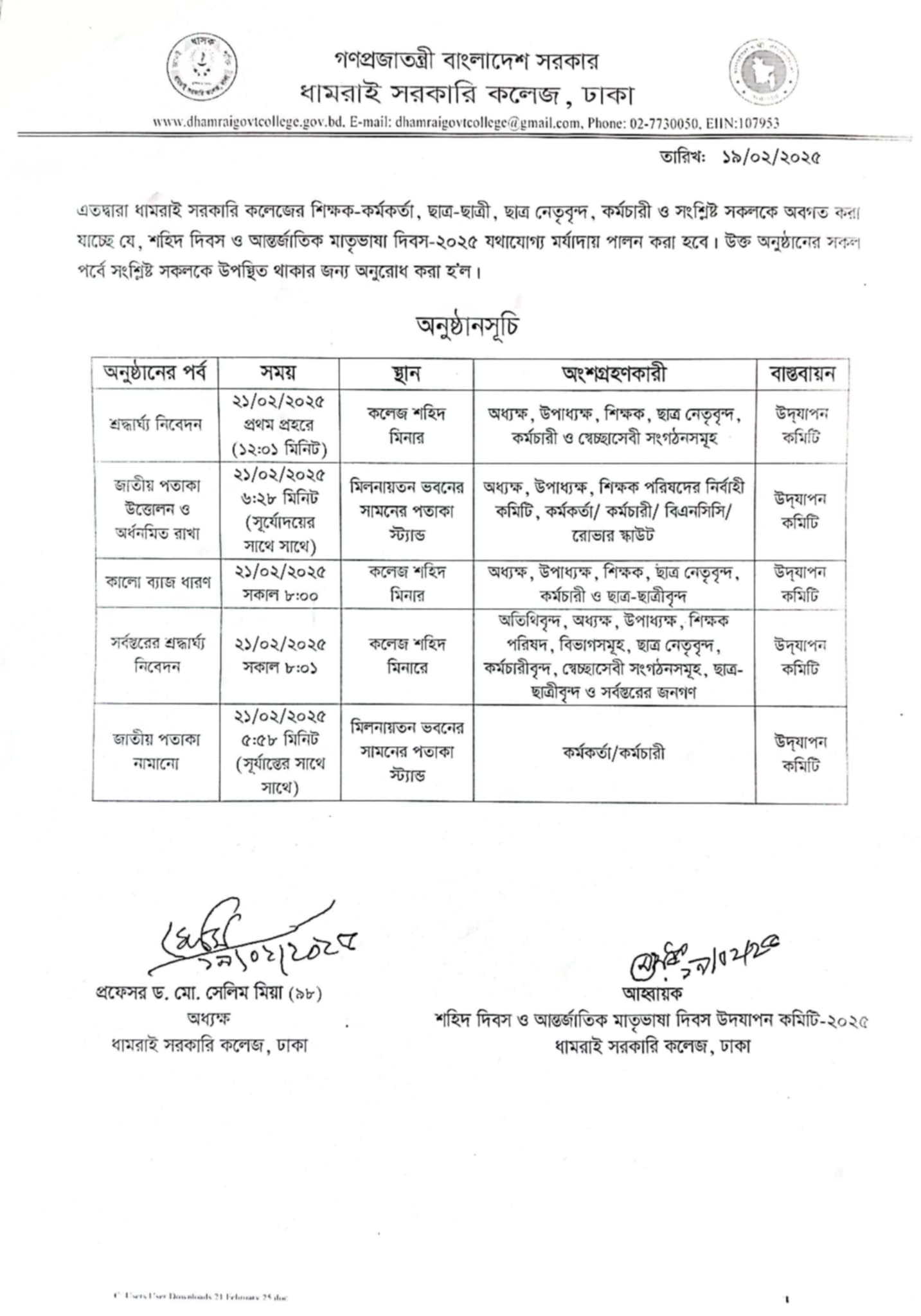 Notice Title : শহিদ দিবস ও আন্তর্জাতিক মাতৃভাষা দিবস- ২০২৫ উদযাপন বিষয়ক বিজ্ঞপ্তি