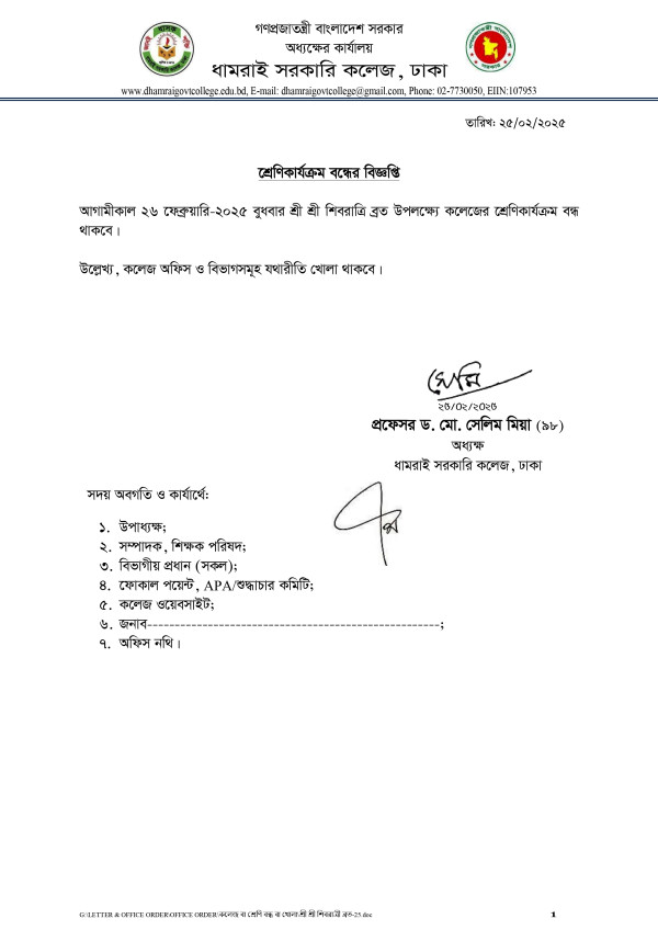 Notice Title : শ্রী শ্রী শিবরাত্রি ব্রত উপলক্ষ্যে কলেজের শ্রেণিকার্যক্রম বন্ধের বিজ্ঞপ্তি