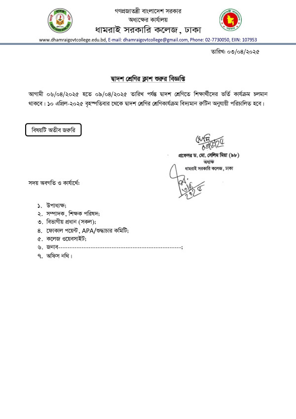 Notice Title : দ্বাদশ শ্রেণির ক্লাশ শুরুর বিজ্ঞপ্তি