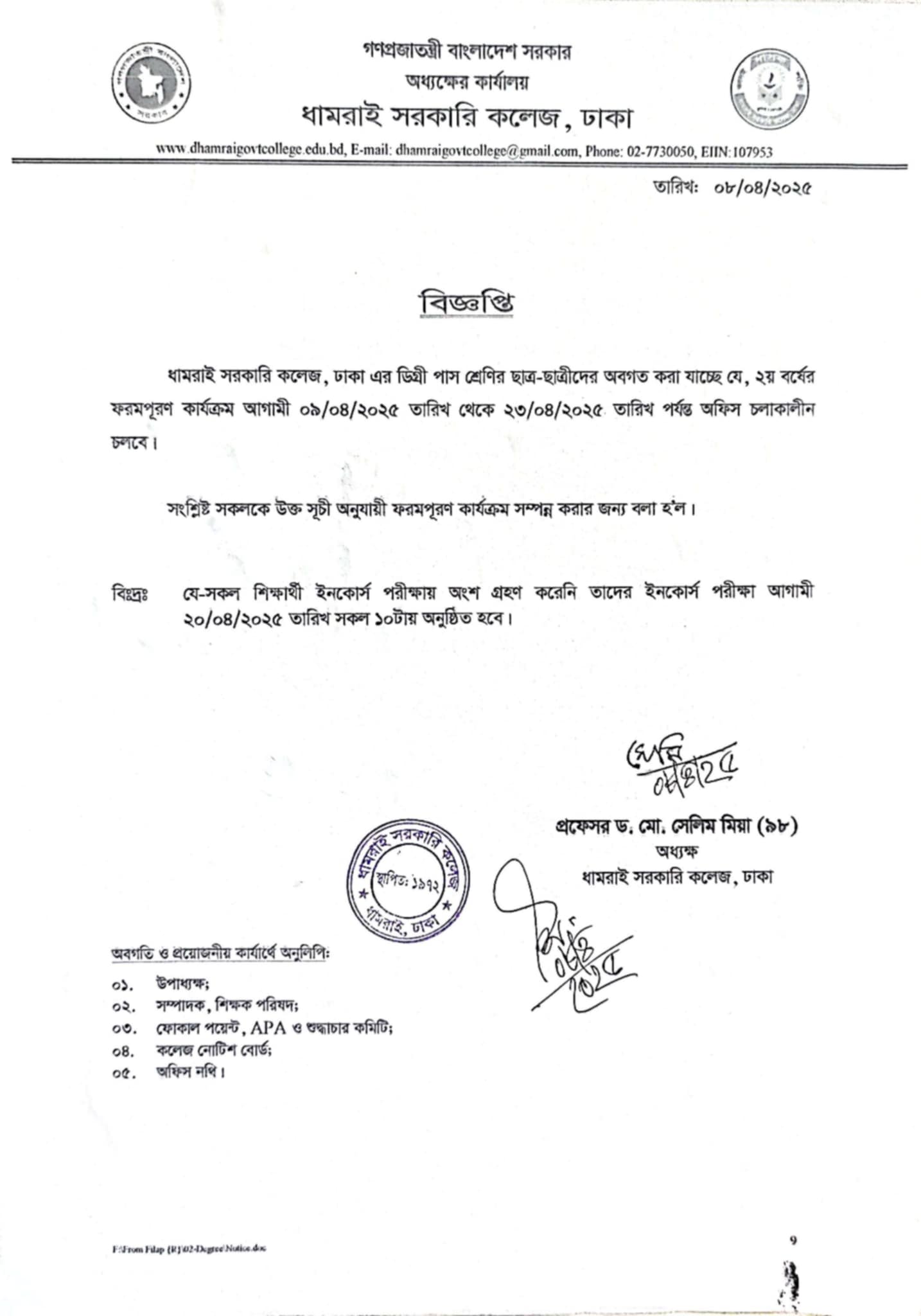 Notice Title : ডিগ্রি ২য় বর্ষ ফরম পূরণের বিজ্ঞপ্তি