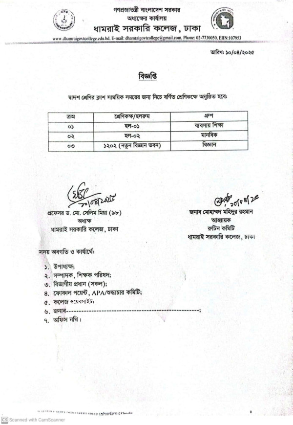 Notice Title : দ্বাদশ শ্রেণির শ্রেণিকার্যক্রম বিষয়ক বিজ্ঞপ্তি