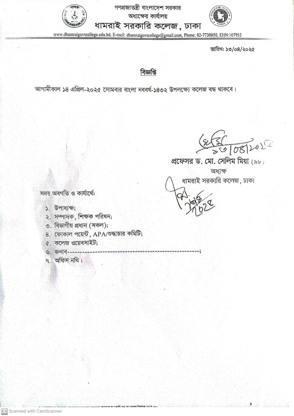 Notice Title : কলেজ বন্ধের বিজ্ঞপ্তি