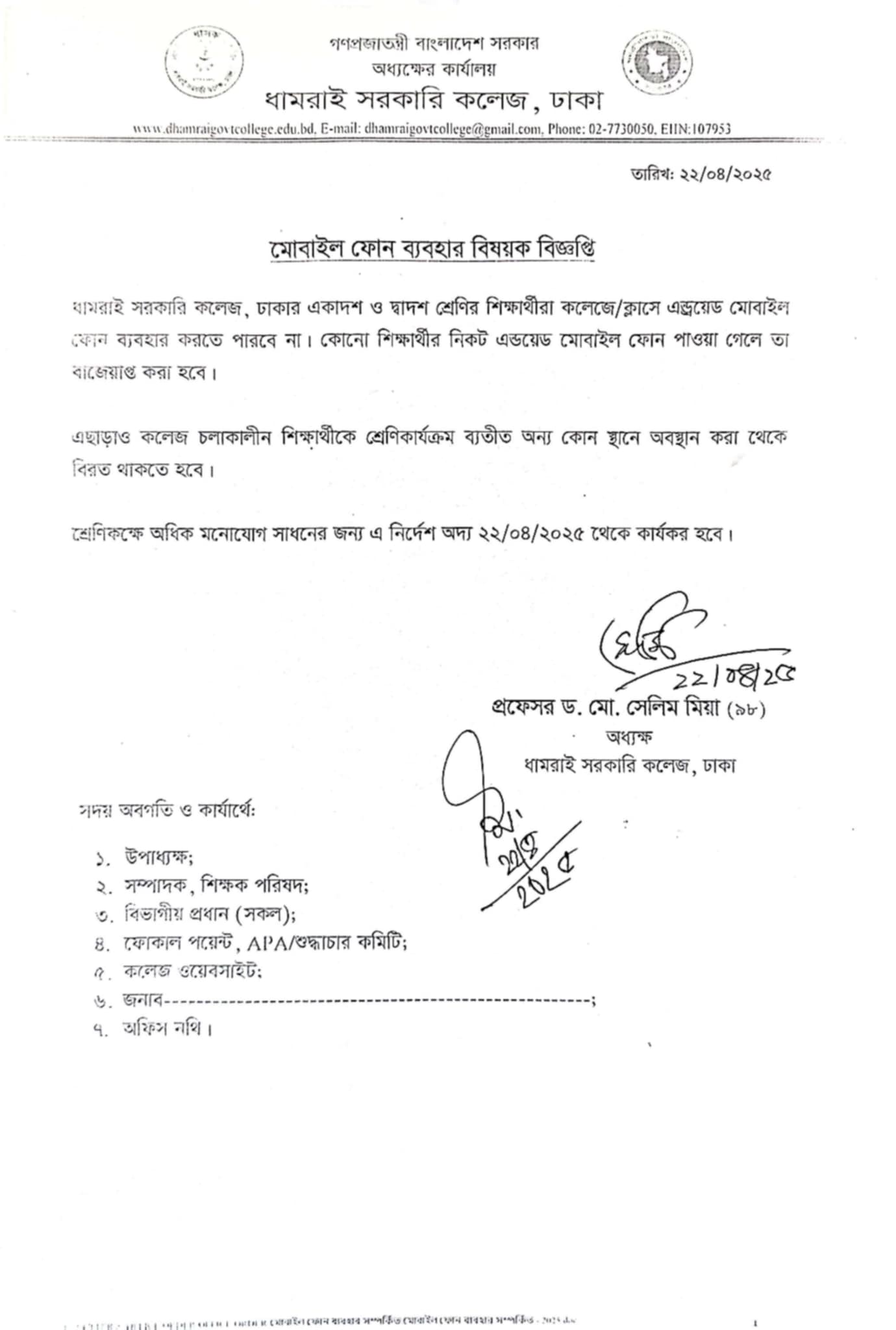 Notice Title : মোবাইল ফোন ব্যবহার বিষয়ক বিজ্ঞপ্তি