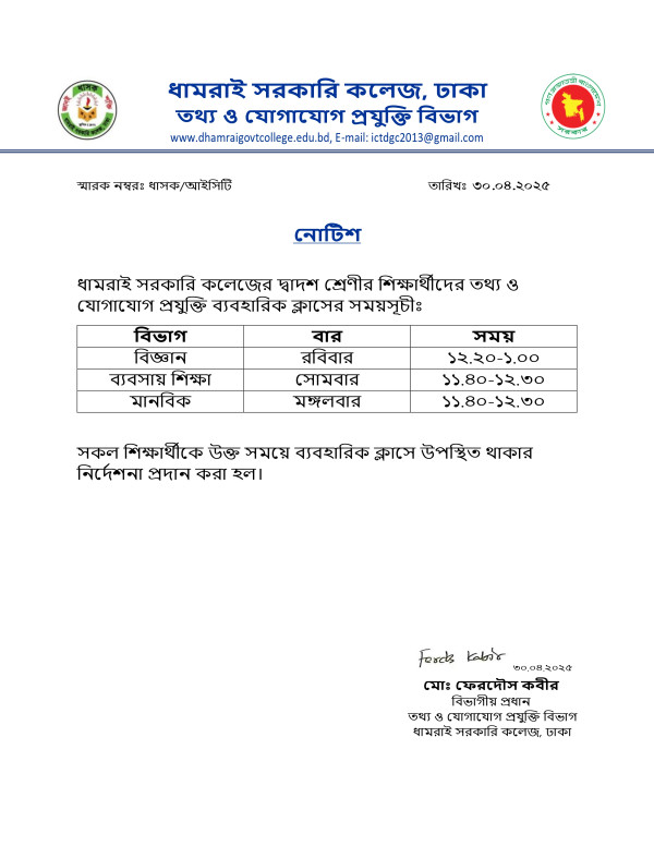 Notice Title : আইসিটি ব্যবহারিক ক্লাশ রুটিন