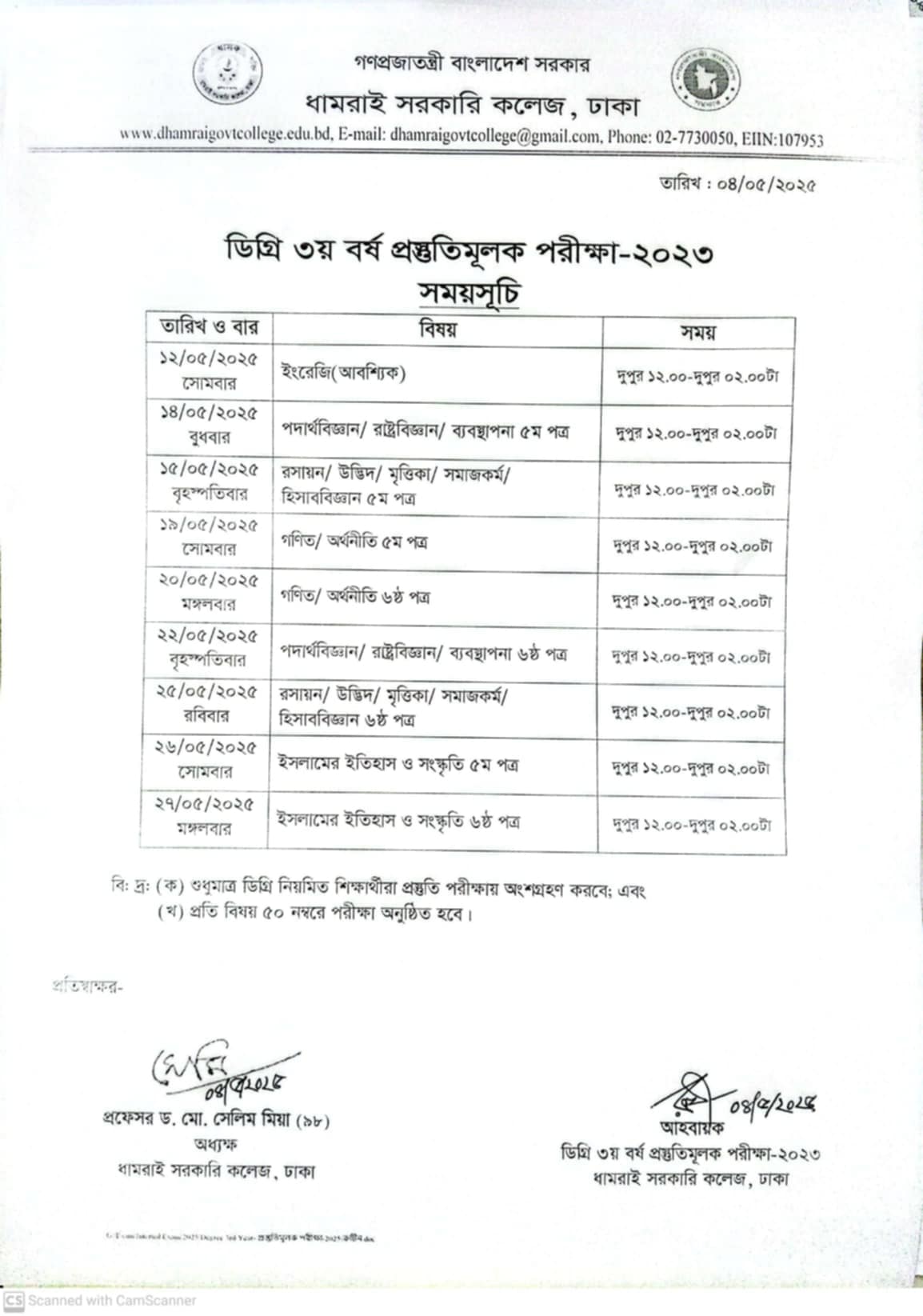 Notice Title : ডিগ্রি ৩য় বর্ষ প্রস্তুতিমূলক পরীক্ষা