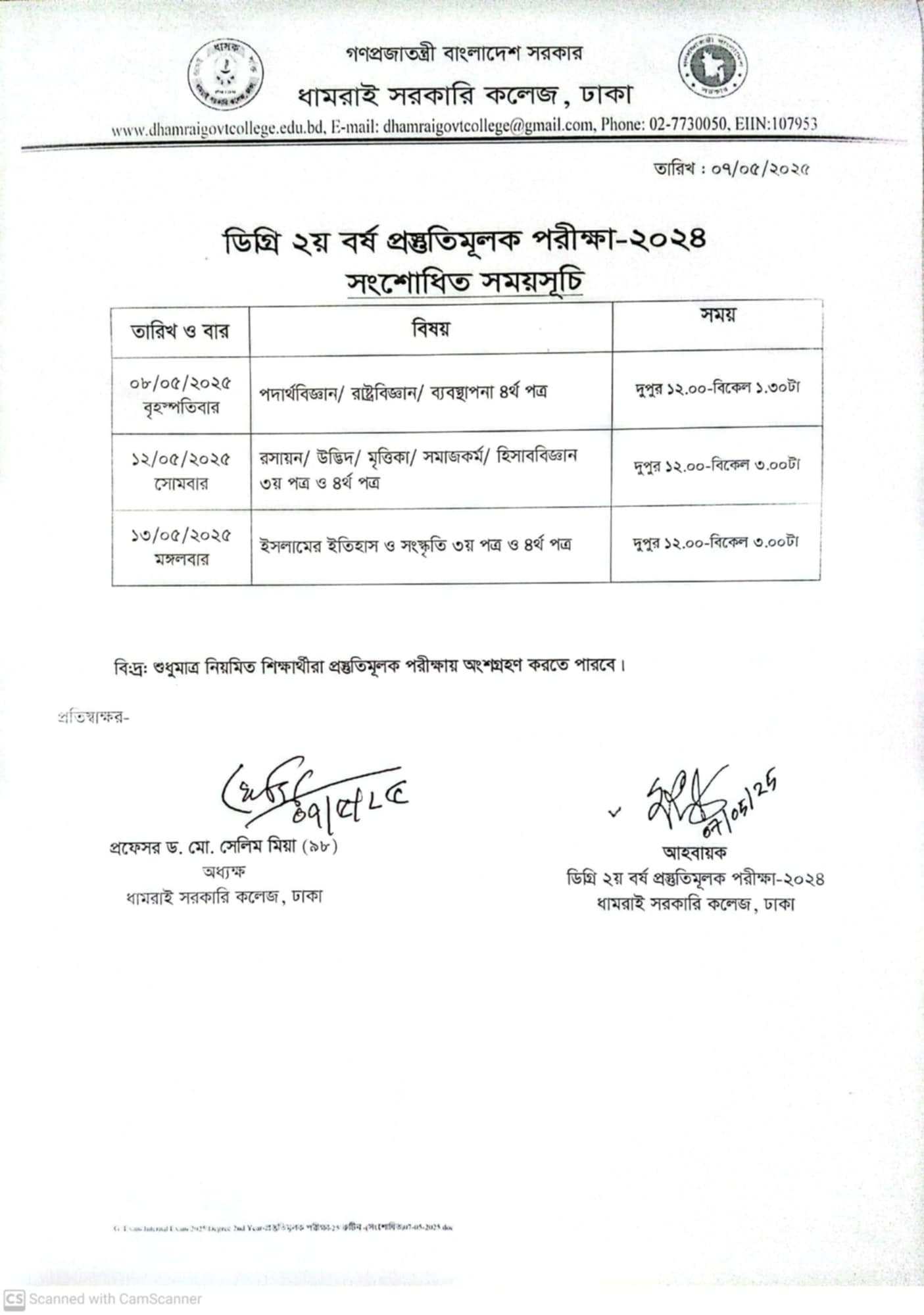 Notice Title : ডিগ্রি ২য় বর্ষের প্রস্তুতিমূলক পরীক্ষার সংশোধিত বিজ্ঞপ্তি