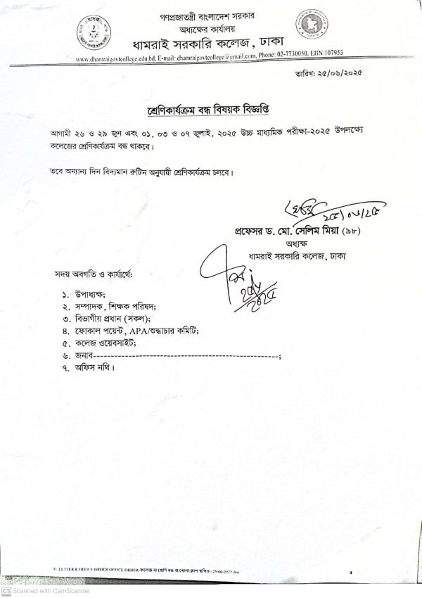 Notice Title : শ্রেণিকার্যকম বন্ধের বিজ্ঞপ্তি