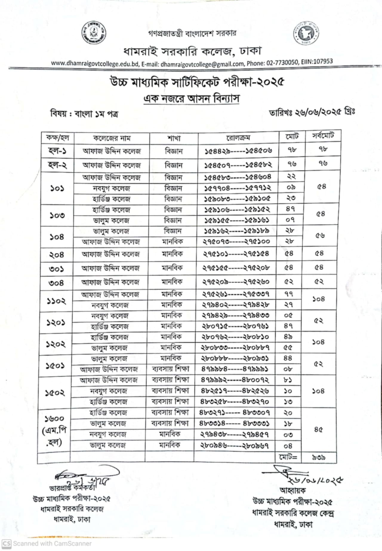 Notice Title : উচ্চ মাধ্যমিক পরীক্ষা-২০২৫ এর এক নজরে আসন বিন্যাস