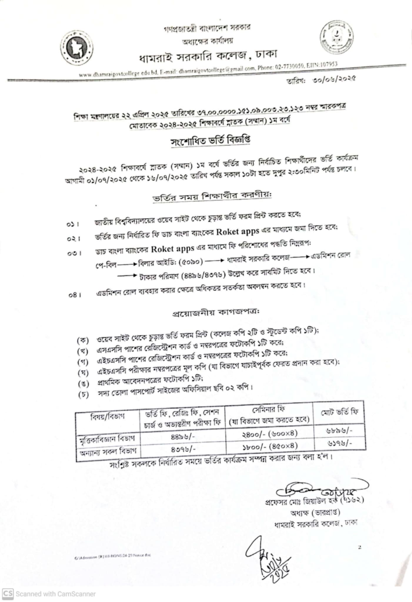 Notice Title : ২০২৪-২৫ শিক্ষাবর্ষে অনার্স ১ম বর্ষ ভর্তির সংশোধিত বিজ্ঞপ্তি