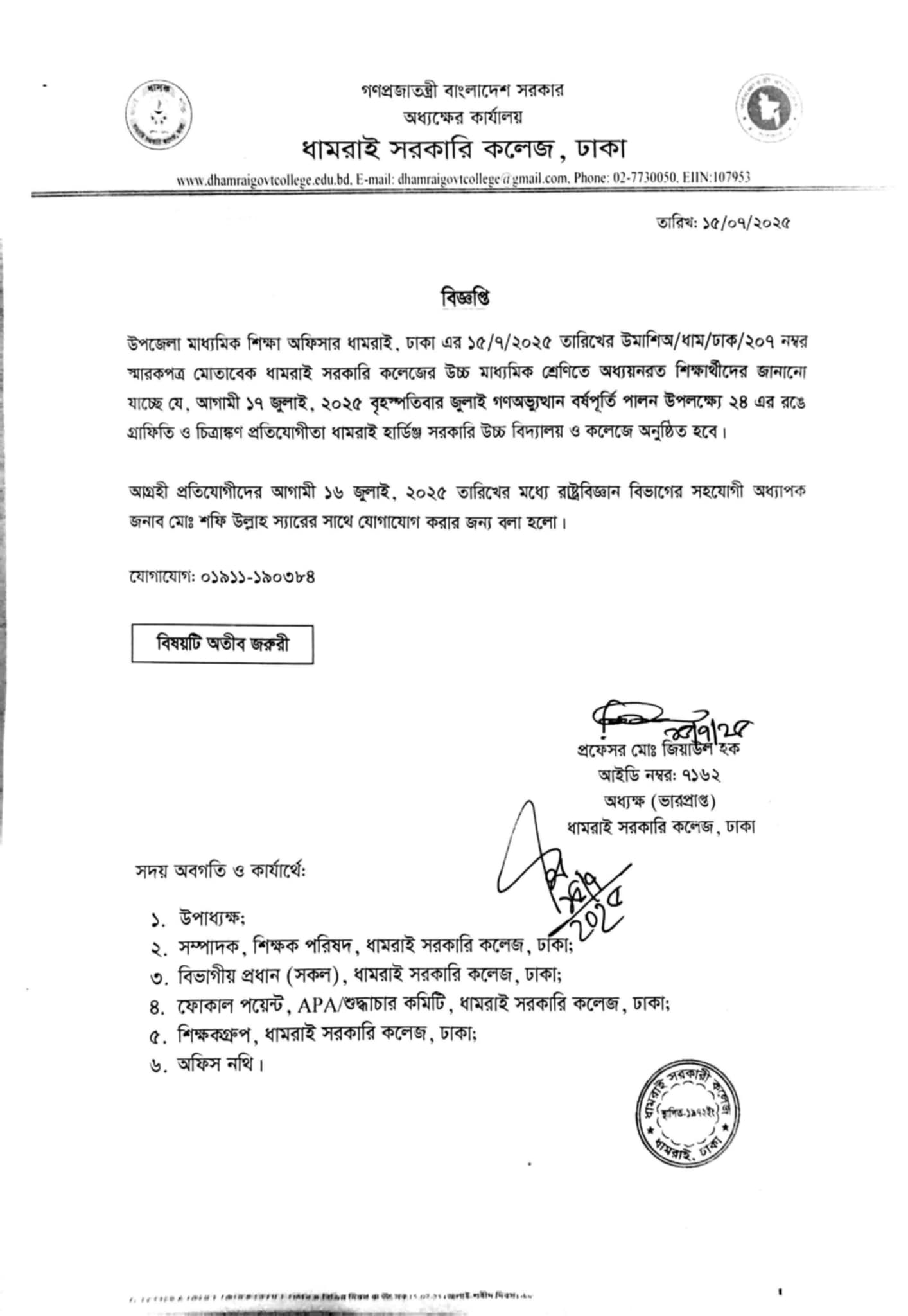 Notice Title : গ্রাফিতি ও চিত্রাঙ্কণ প্রতিযোগীতা বিষয়ক বিজ্ঞপ্তি