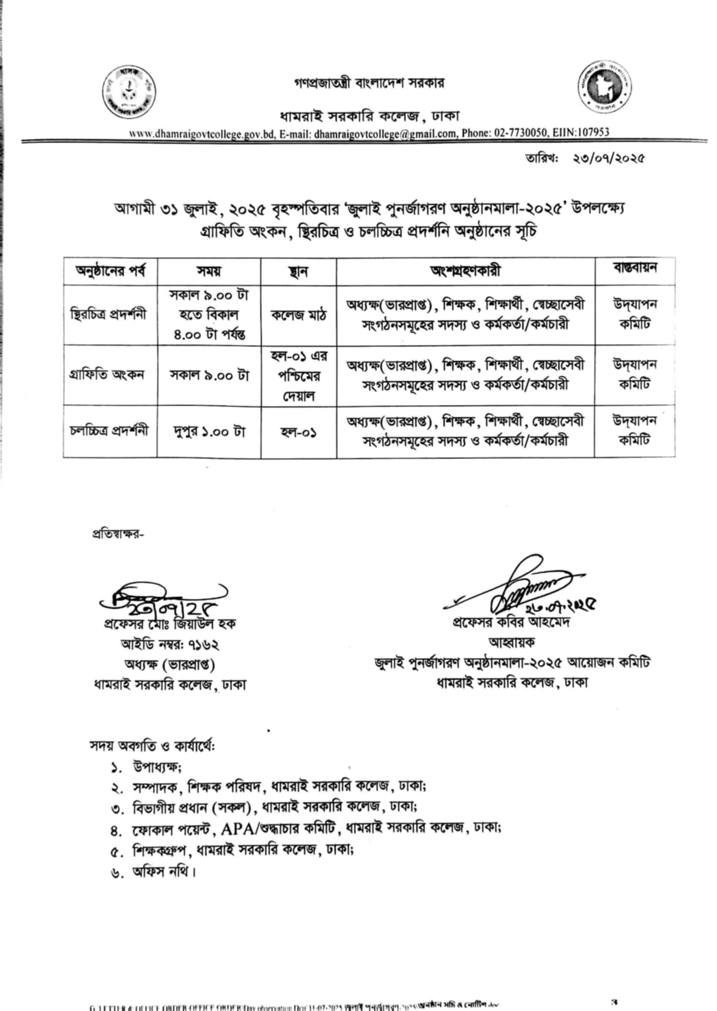 Notice Title : জুলাই পুনর্জাগরণ অনুষ্ঠানমালা-২০২৫ অনুষ্ঠান সূচি