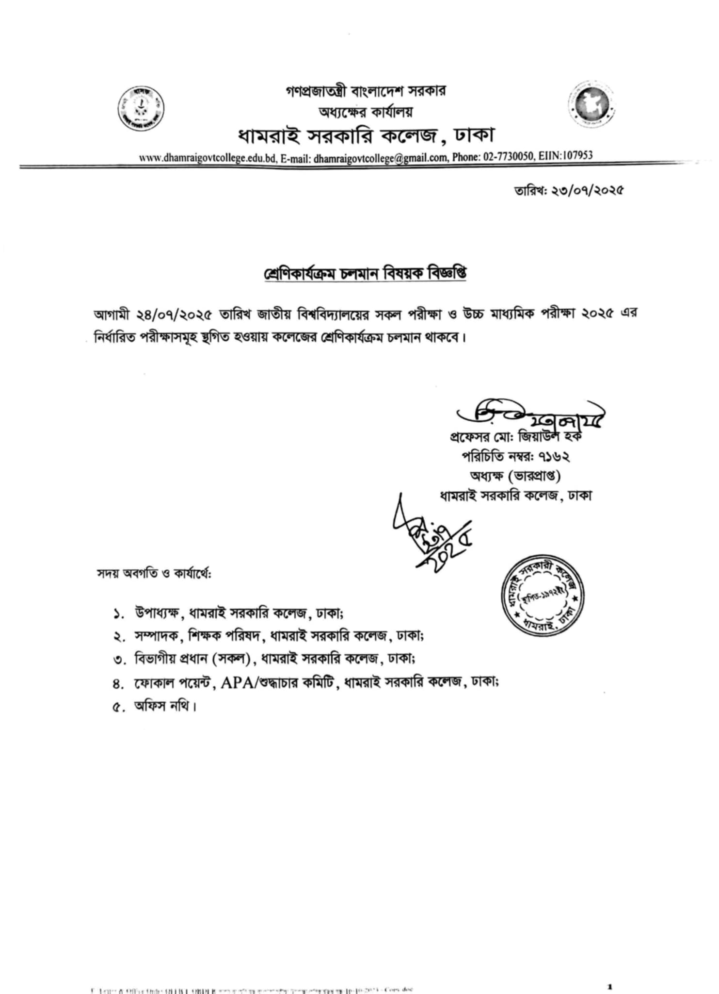 Notice Title : শ্রেণিকার্যক্রম শুরু বিষয়ক বিজ্ঞপ্তি