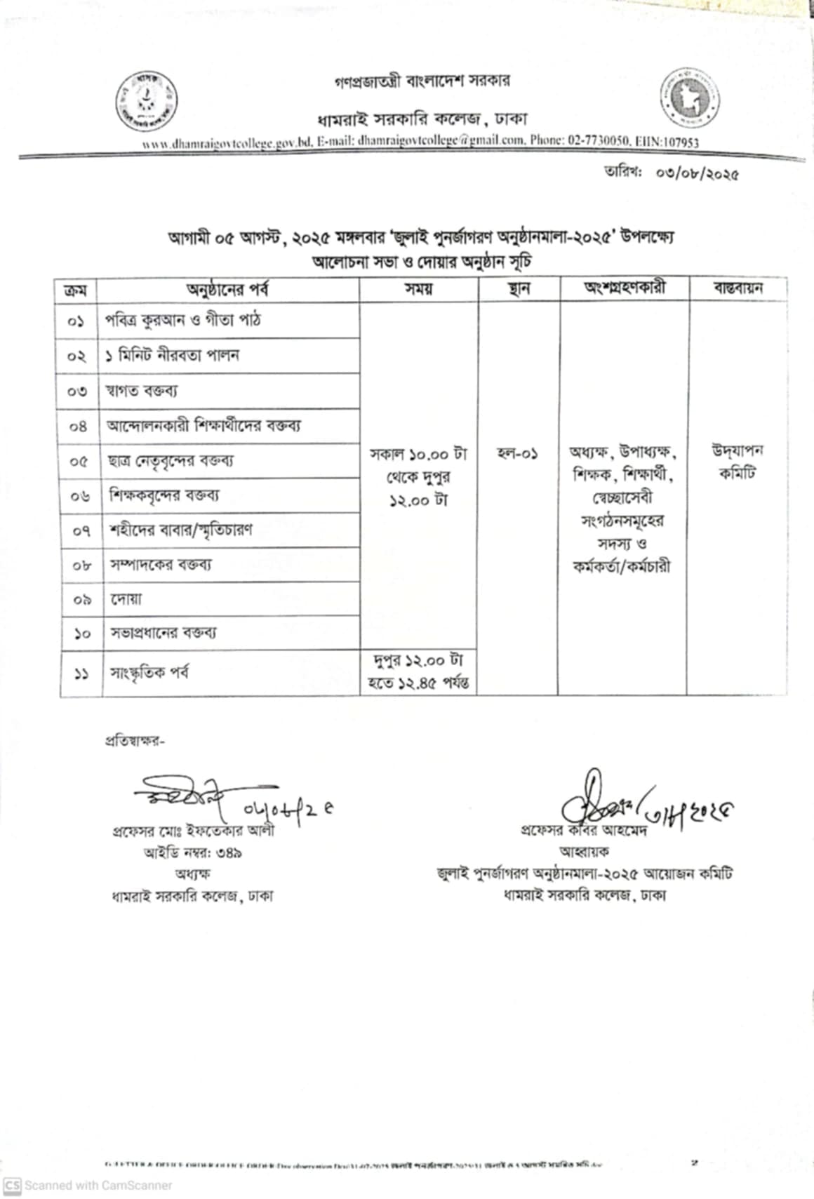 Notice Title : জুলাই পুনর্জাগরণ অনুষ্ঠানমালা-২০২৫ উপলক্ষ্যে আলোচনা সভা ও দোয়ার অনুষ্ঠান