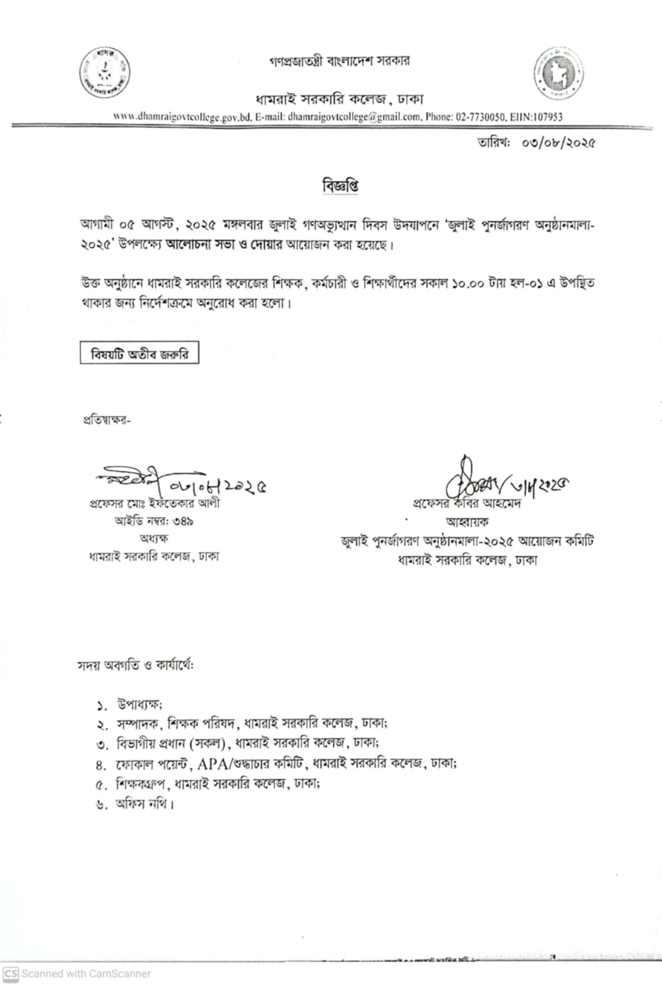 Notice Title : জুলাই পুনর্জাগরণ অনুষ্ঠানমালা-২০২৫ বিষয়ক বিজ্ঞপ্তি