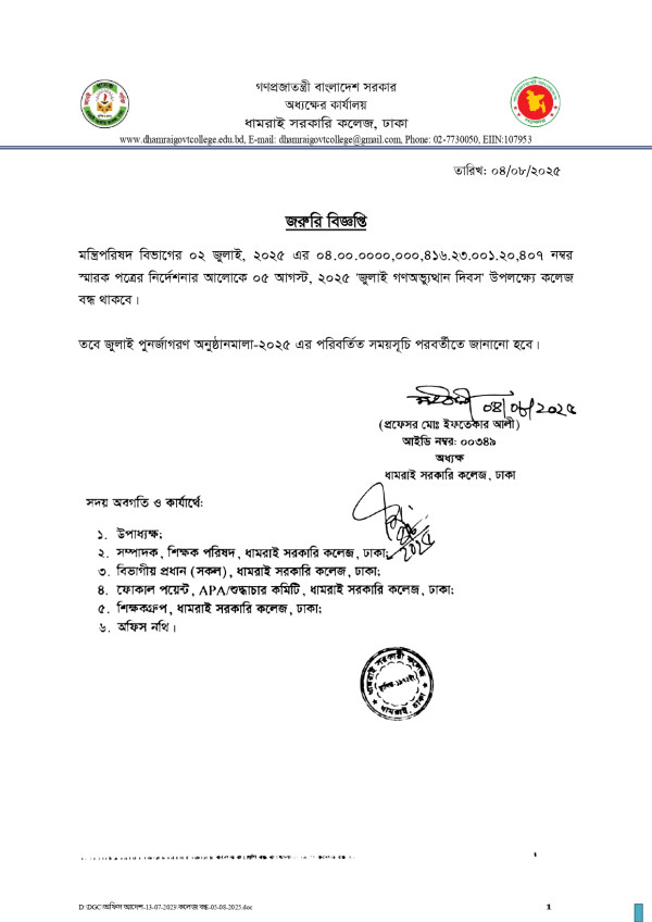 Notice Title : জরুরি বিজ্ঞপ্তি