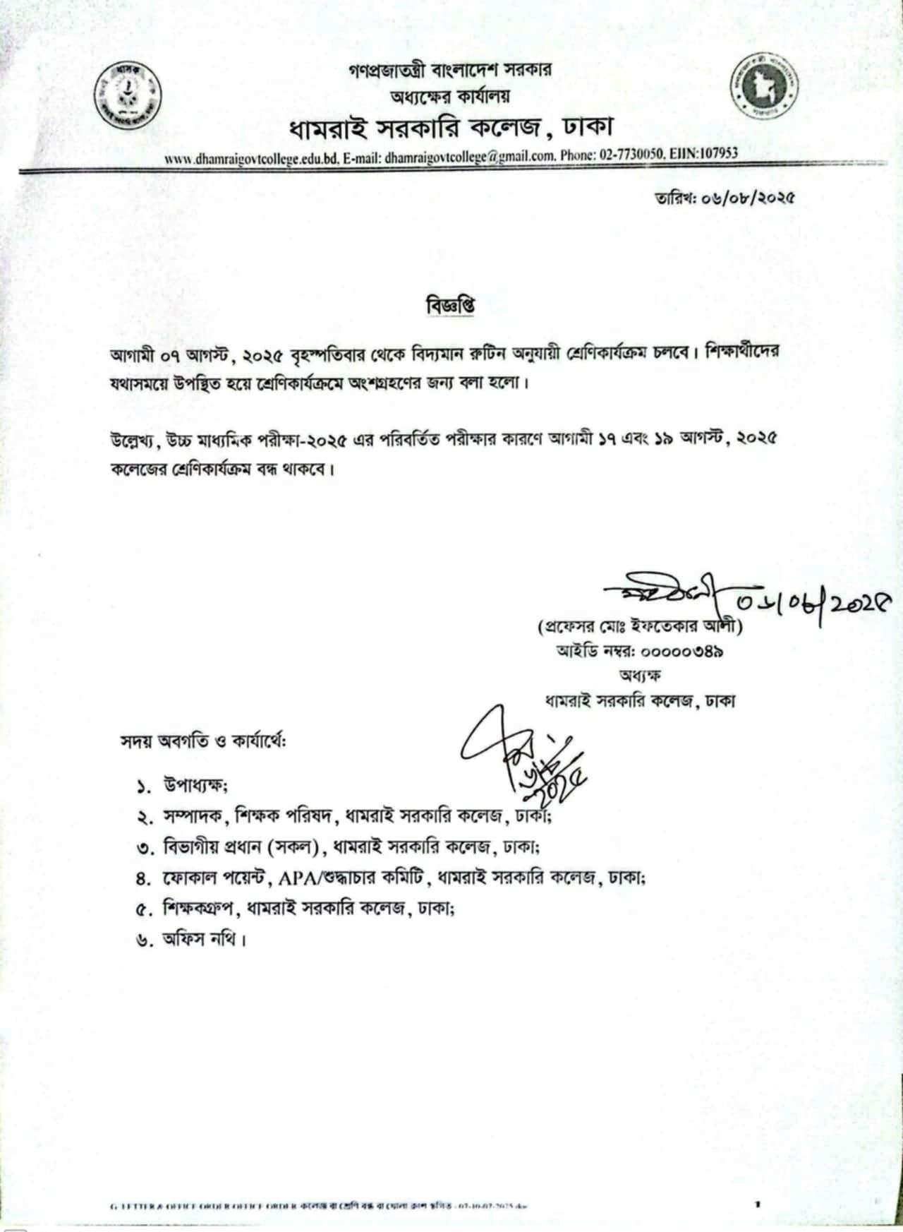 Notice Title : শ্রেণিকার্যক্রম বিষয়ক বিজ্ঞপ্তি
