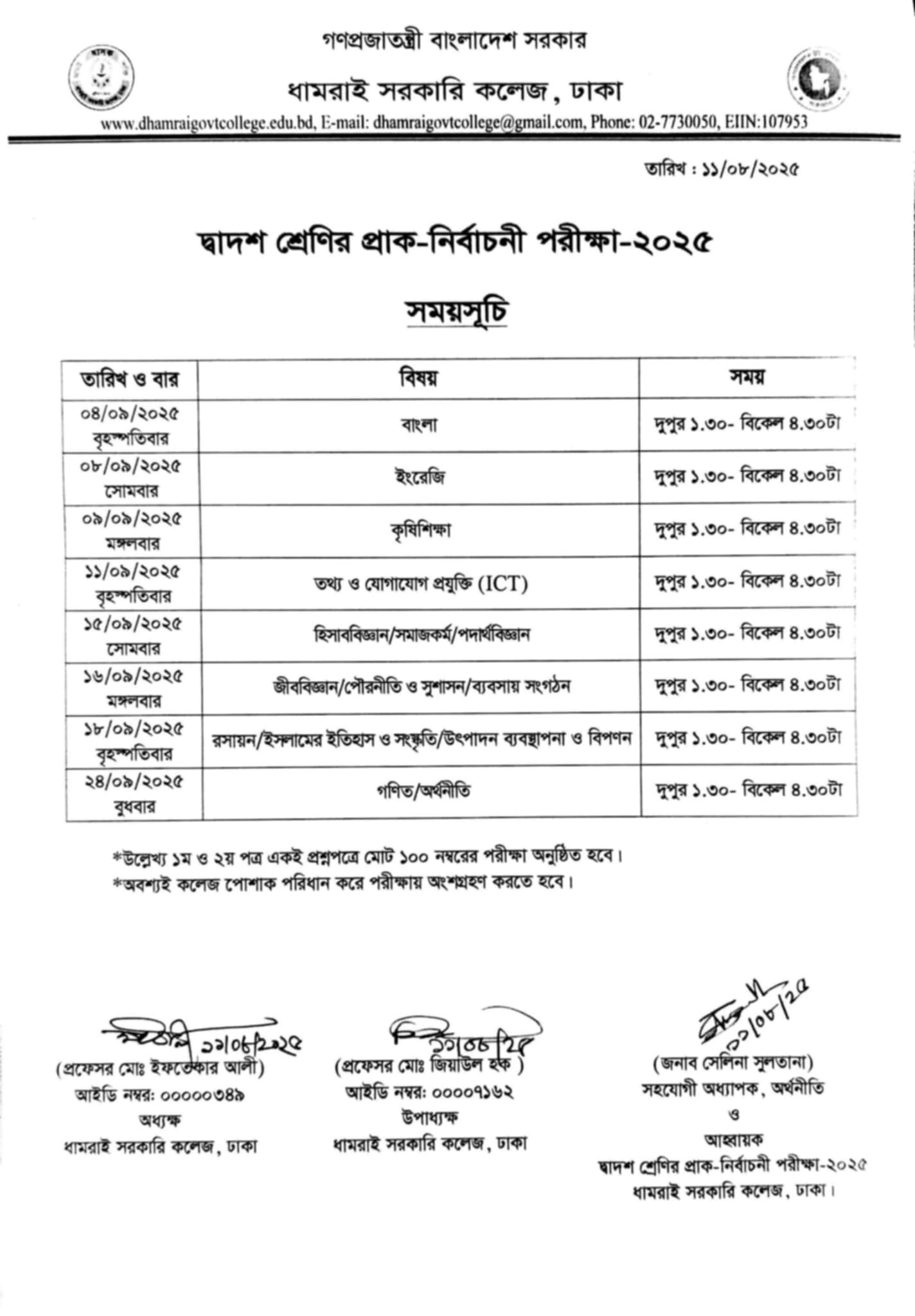 Notice Title : দ্বাদশ শ্রেণির প্রাক-নির্বাচনী পরীক্ষা- ২০২৫ এর সময়সূচি