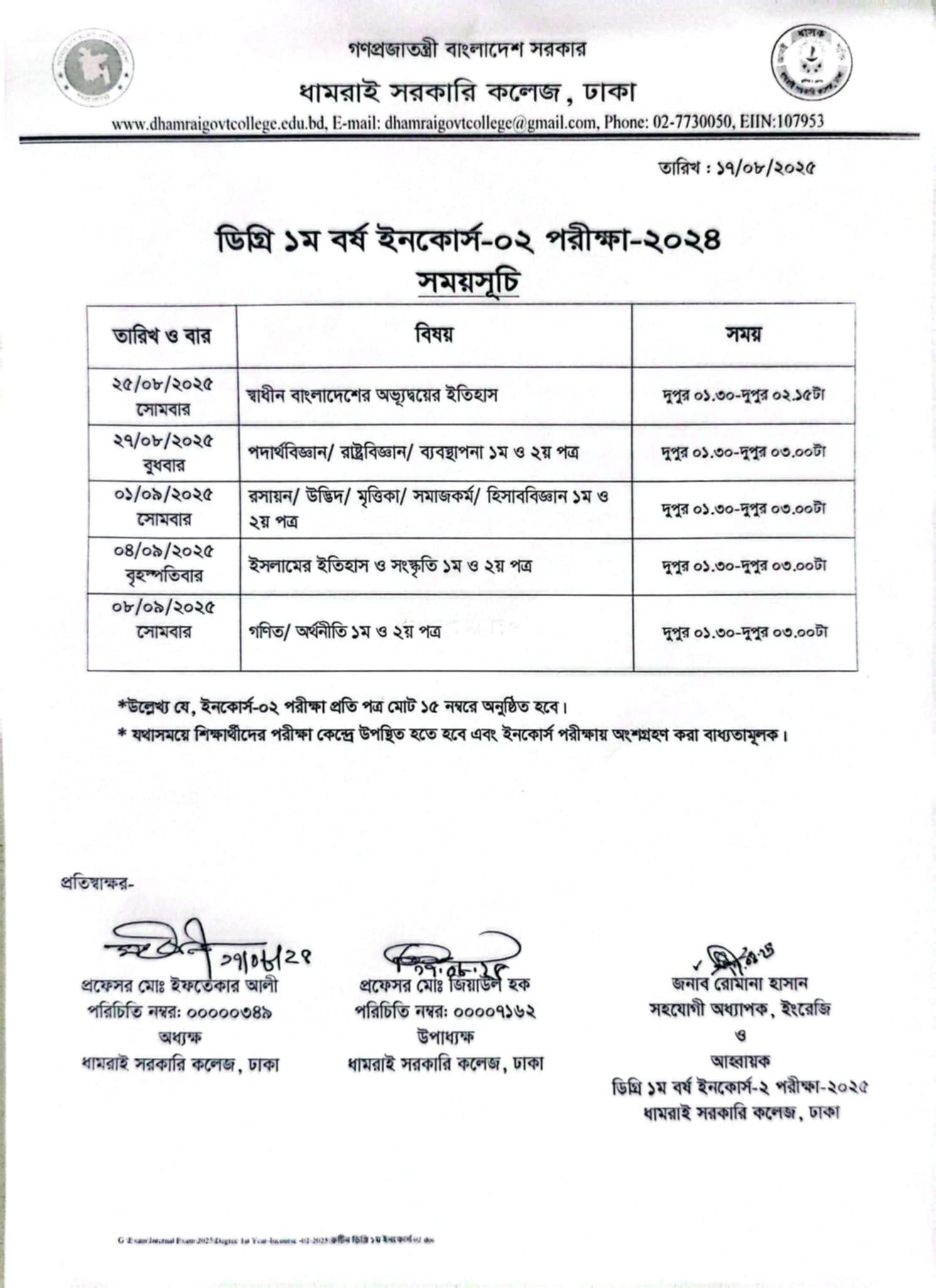 Notice Title : ডিগ্রি ১ম বর্ষ ইনকোর্স-০২ পরীক্ষা-২০২৪ এর সূচি